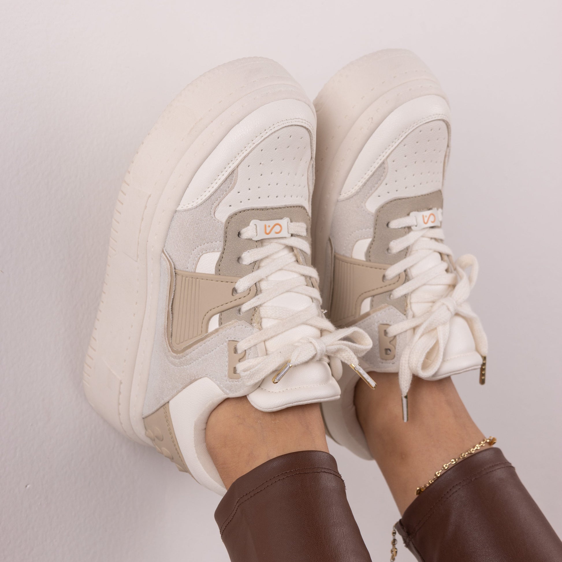 Estos tenis en color beige combina un diseño casual y moderno con una plataforma interna que aporta y altura. Los elegantes apliques en caucho con diferentes texturas y sus materiales agregan un toque cómodo, convirtiéndolos en la opción perfecta para un look estilizado y cómodo. Fabricados con materiales de alta calidad, estos tenis aseguran durabilidad y comodidad durante todo el día. Ideales para combinar con cualquier outfit, desde lo casual hasta lo elegante.