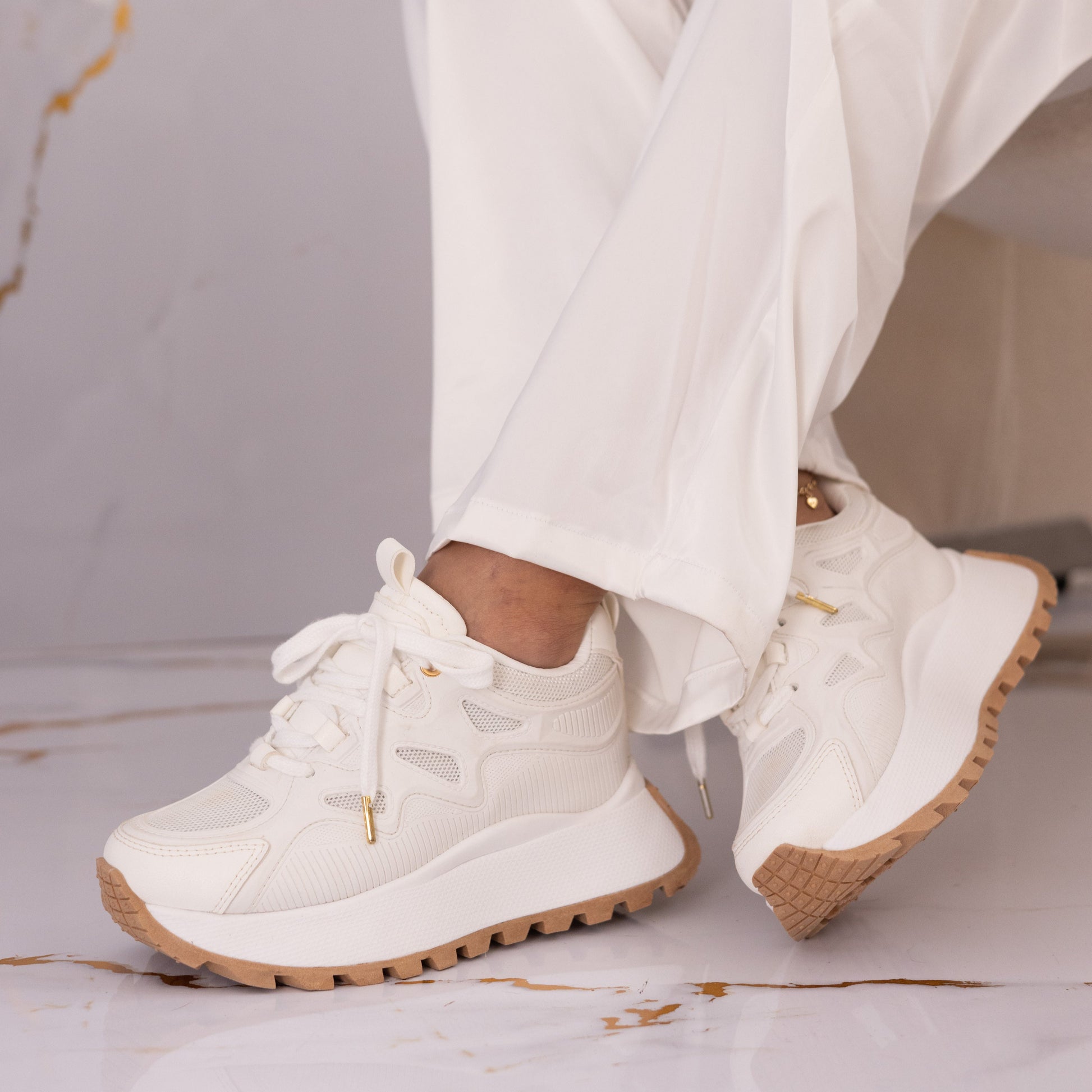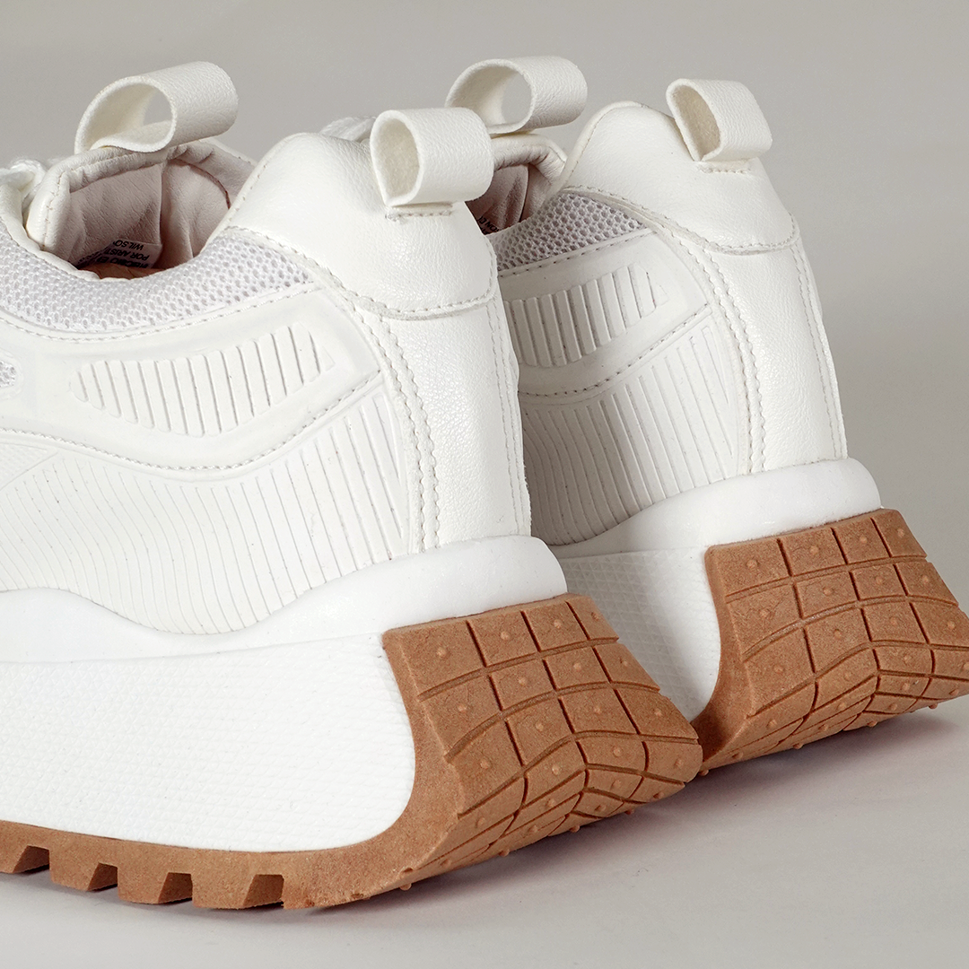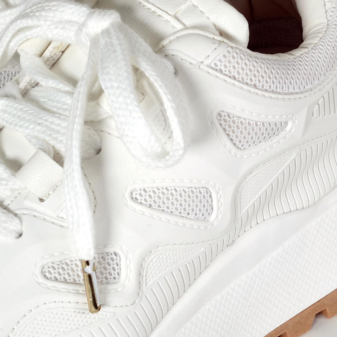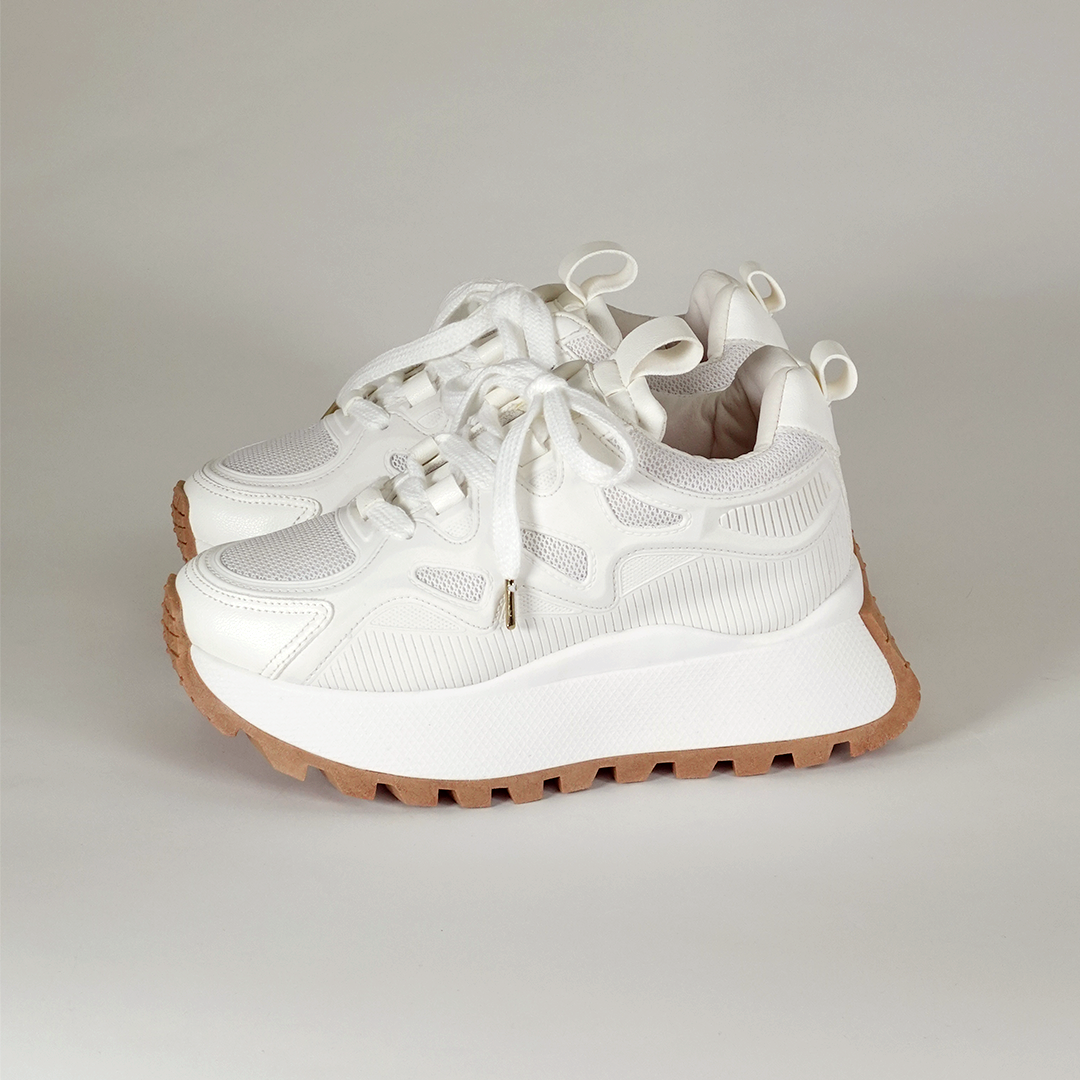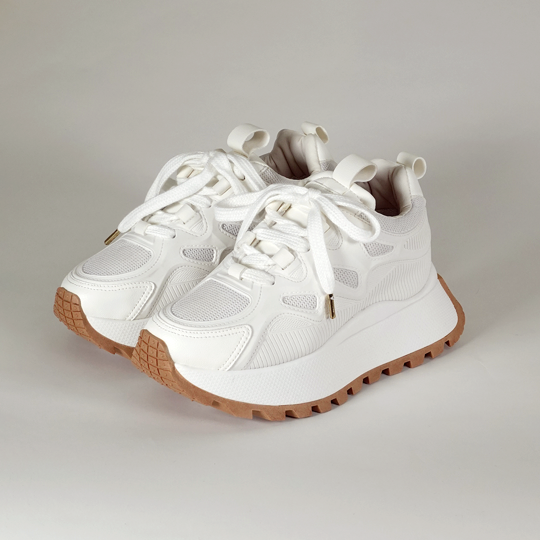 Su diseño moderno con suela gruesa y materiales sintéticos de excelente calidad los hace perfectos para cualquier momento. Disponibles en tallas del 34 al 40, su tono blanco aporta versatilidad y elegancia a tu colección.