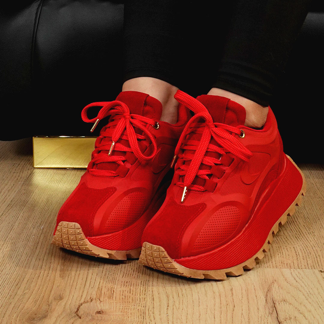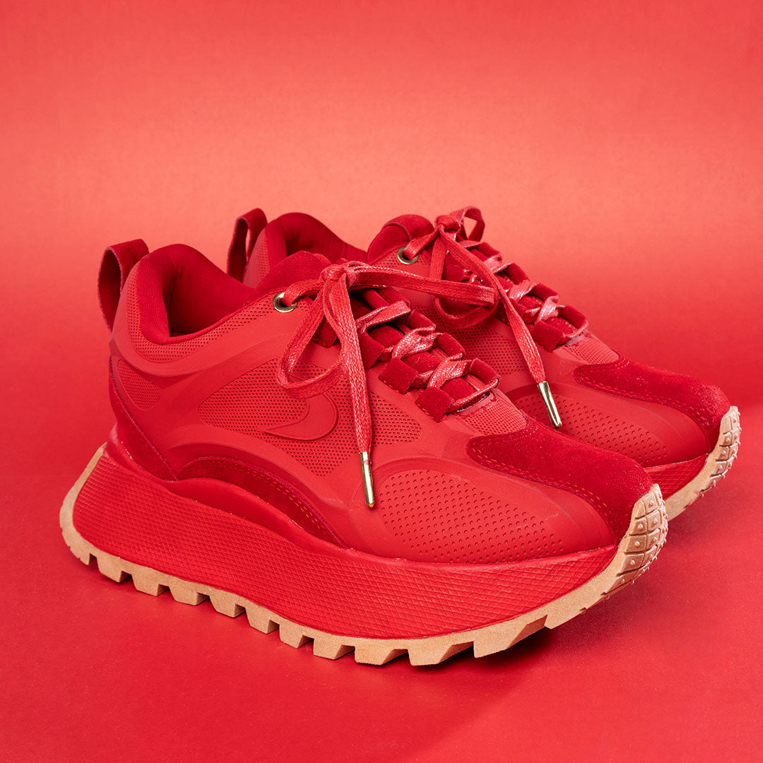 Los tenis EMMA Rojo irrumpen con una explosión de color y actitud. Su diseño en tonos rojos intensos, combinado con texturas contrastantes, proyecta seguridad, estilo y una vibra deportiva que no pasa desapercibida.