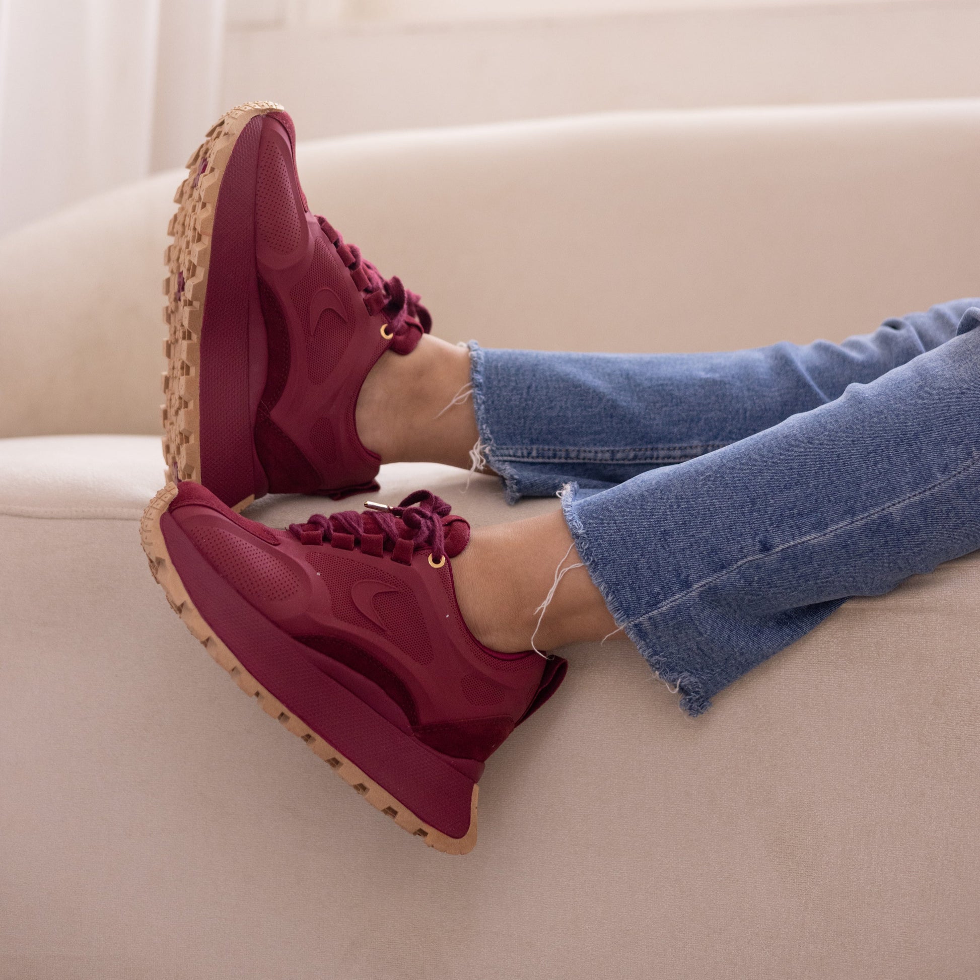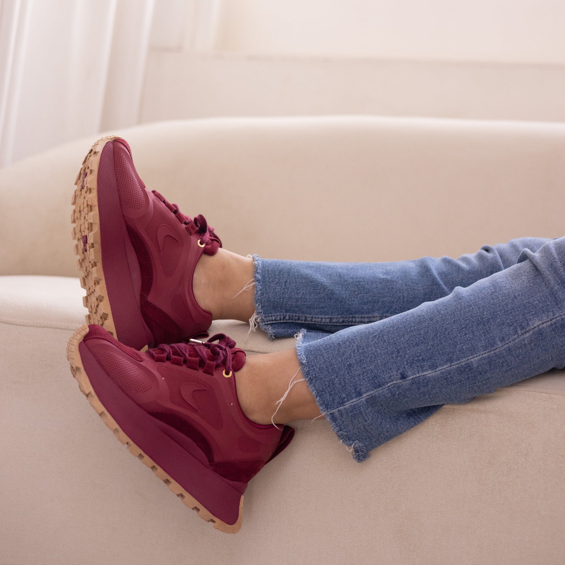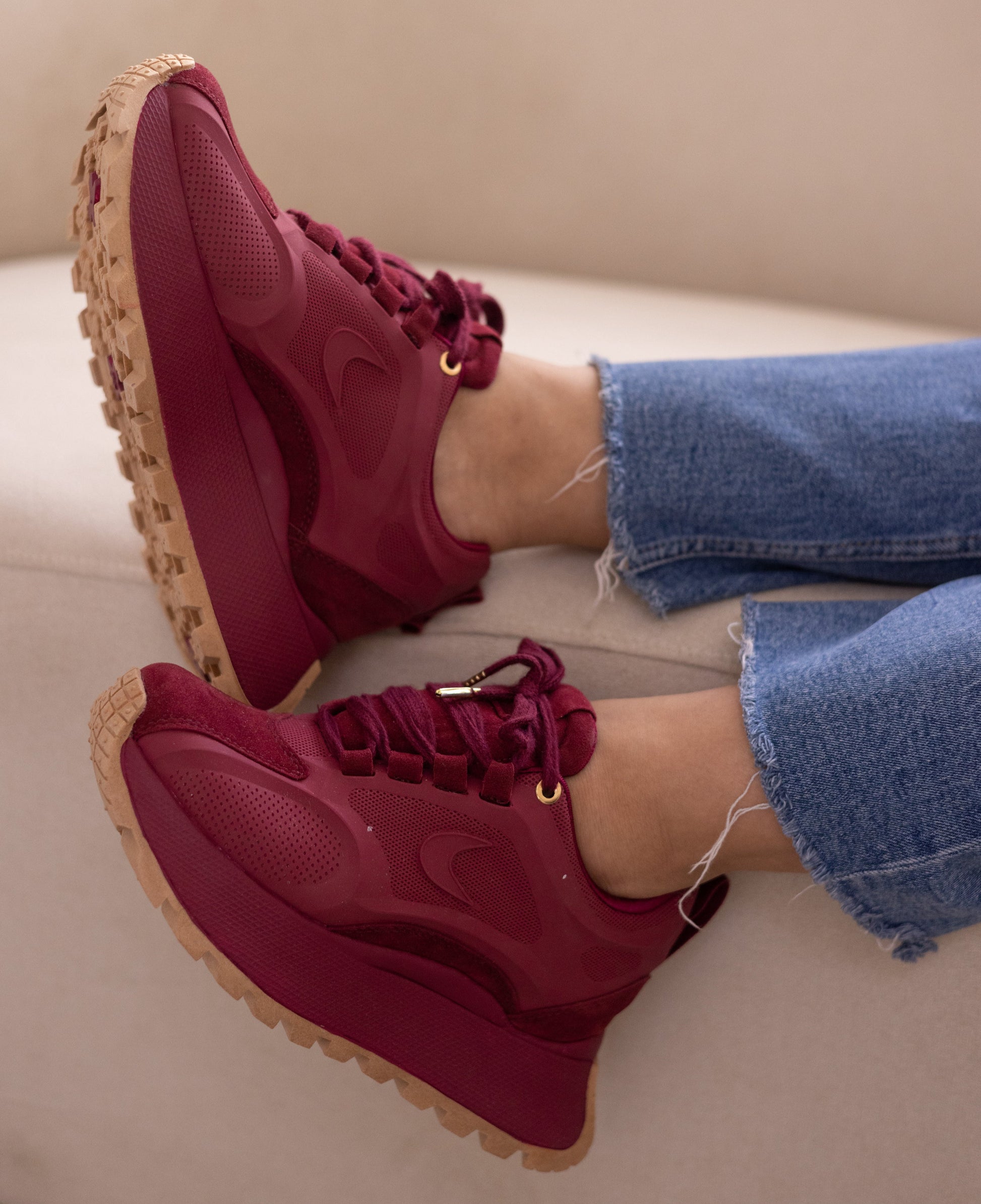 La suela chunky en contraste camel aporta altura y presencia sin perder la ligereza visual. Fabricados en materiales sintéticos de alta calidad, los EMMA Vinotinto se adaptan a tus movimientos con total comodidad.