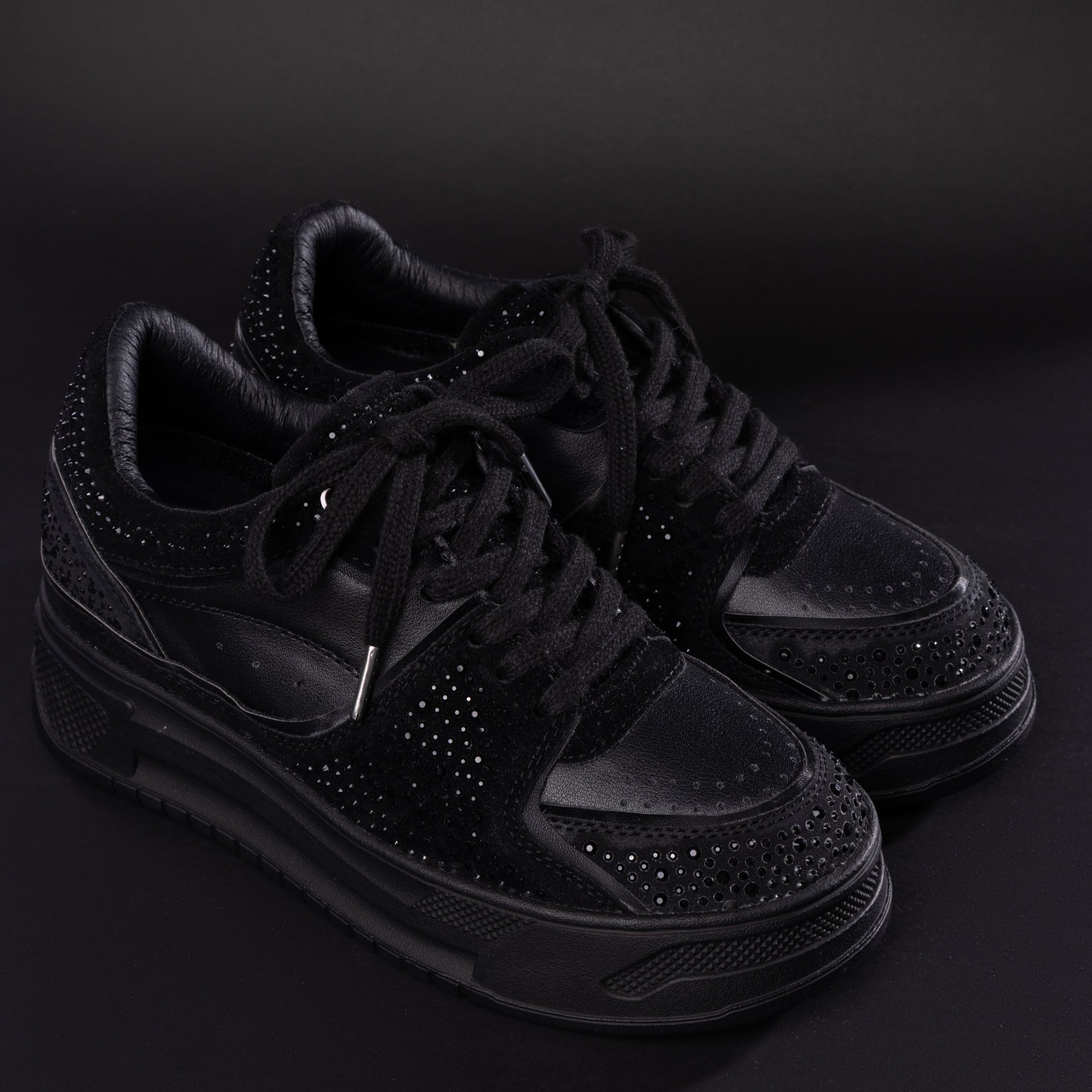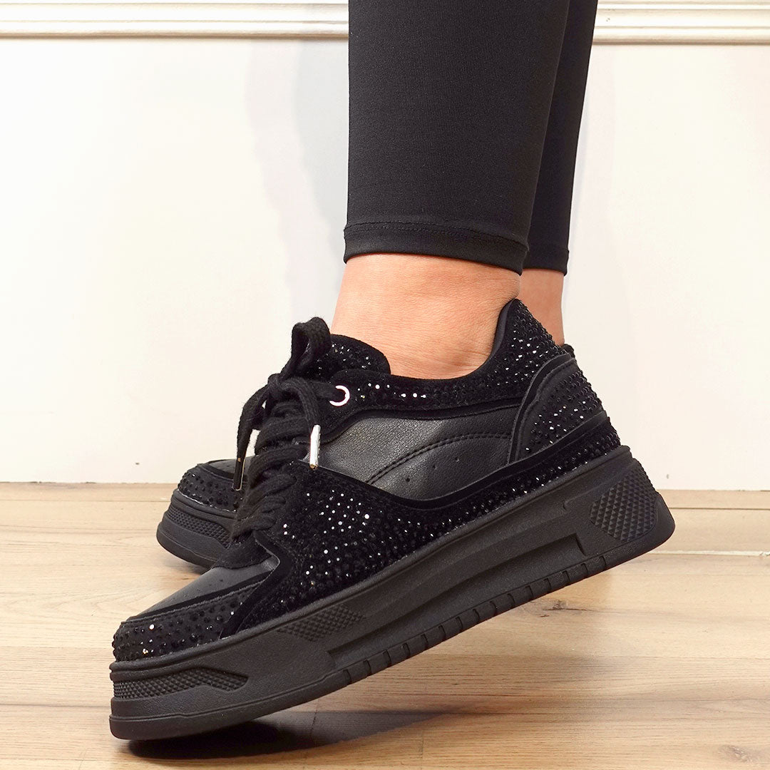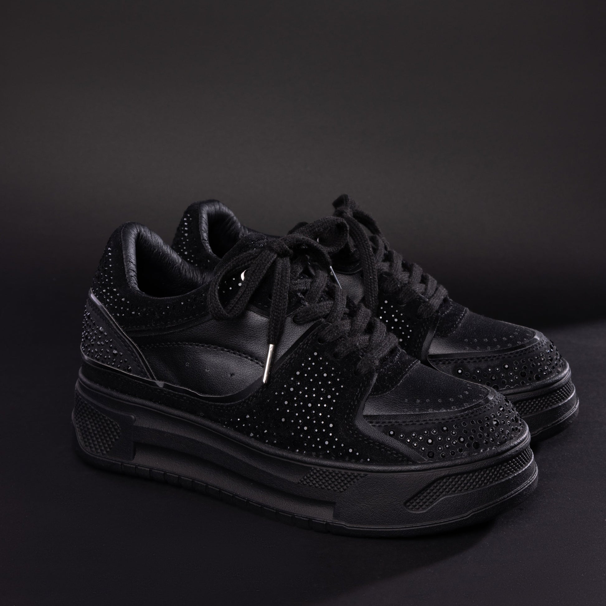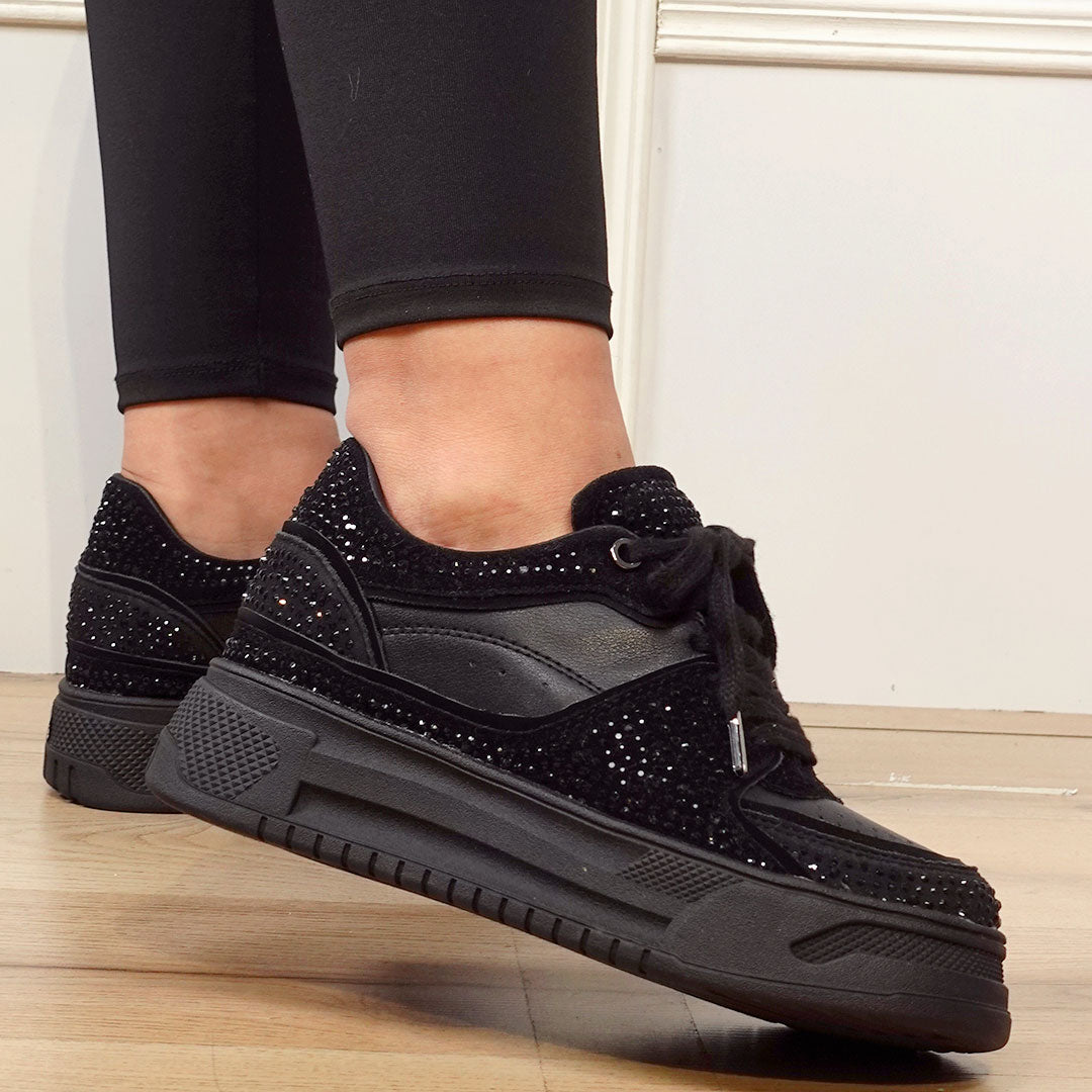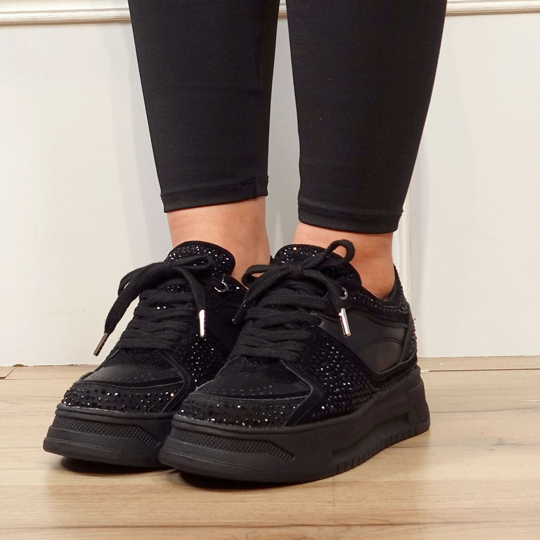 Los GLAM Negro son el equilibrio perfecto entre elegancia y actitud. Su acabado en gamuza oscura se realza con apliques de brillo negro que reflejan tu seguridad y te hacen destacar sin esfuerzo. Una silueta robusta, con plataforma alta, que estiliza la figura y da presencia a cualquier look.