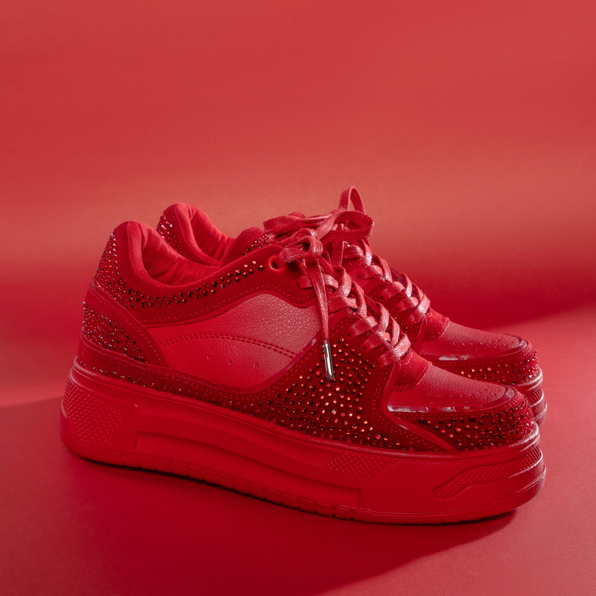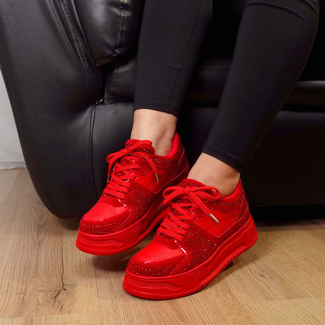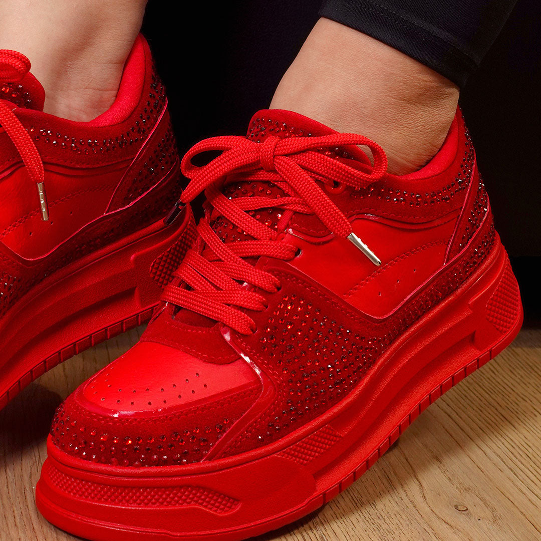 Los GLAM Rojo son para mujeres que no temen ser el centro de atención. Su intenso color rojo encendido, combinado con destellos de pedrería, los convierte en el par ideal para transformar cualquier look en una declaración de estilo.