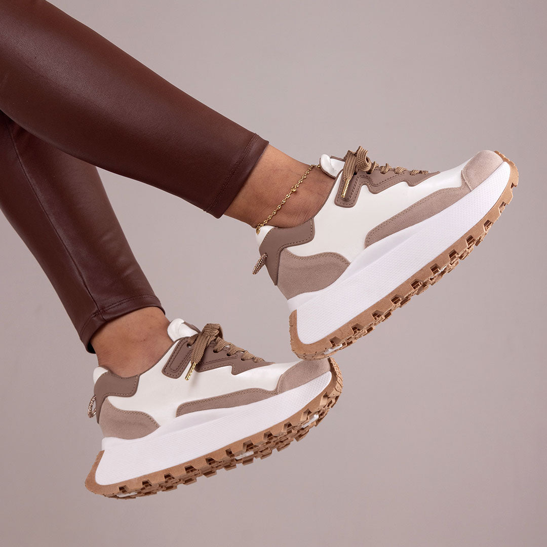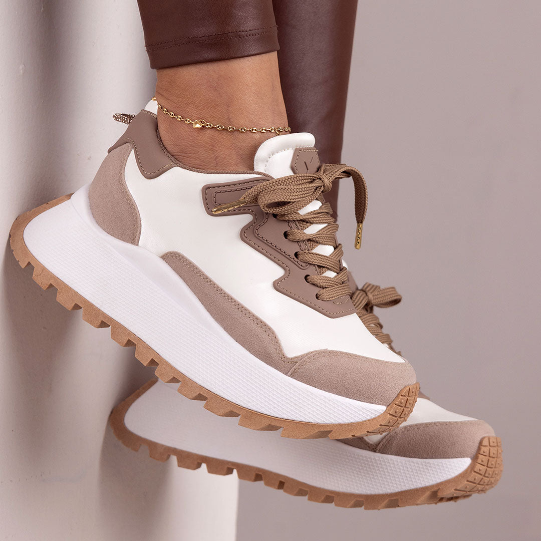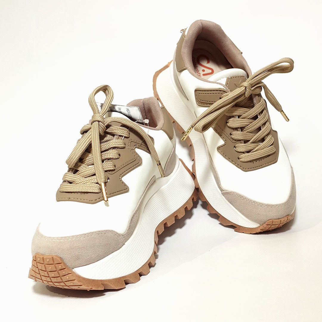 Zapatos De Mujer CalzAristy GLOW Blanco Camel – Estilo Urbano con Brillo Propio