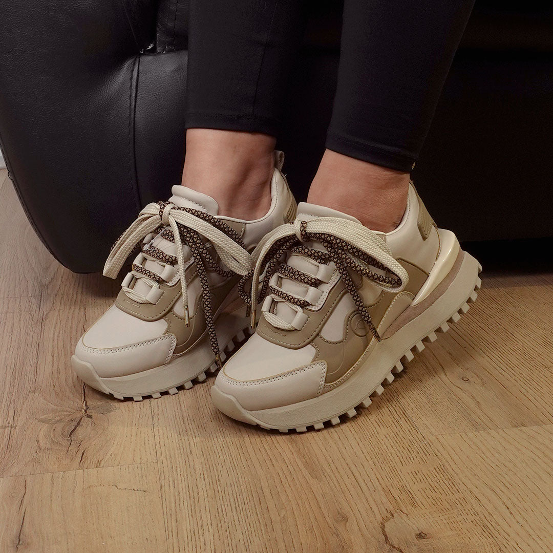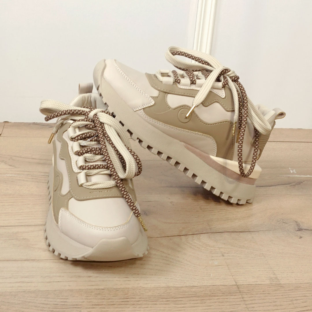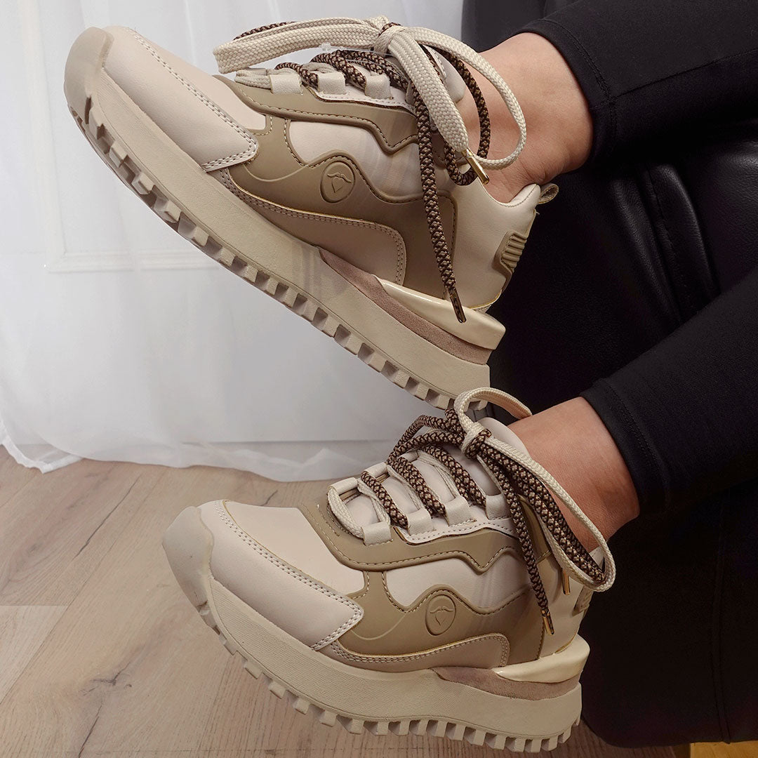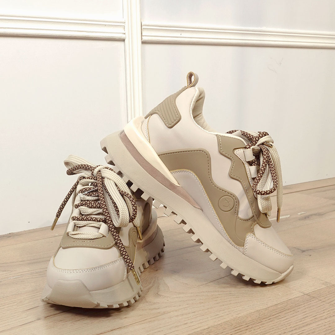 Los tenis MAE Taupe son la fusión perfecta entre lo urbano y lo sofisticado. Su paleta de tonos neutros aporta calidez y versatilidad, mientras que su diseño estructurado y su suela tipo montaña añaden carácter y presencia a cada paso.