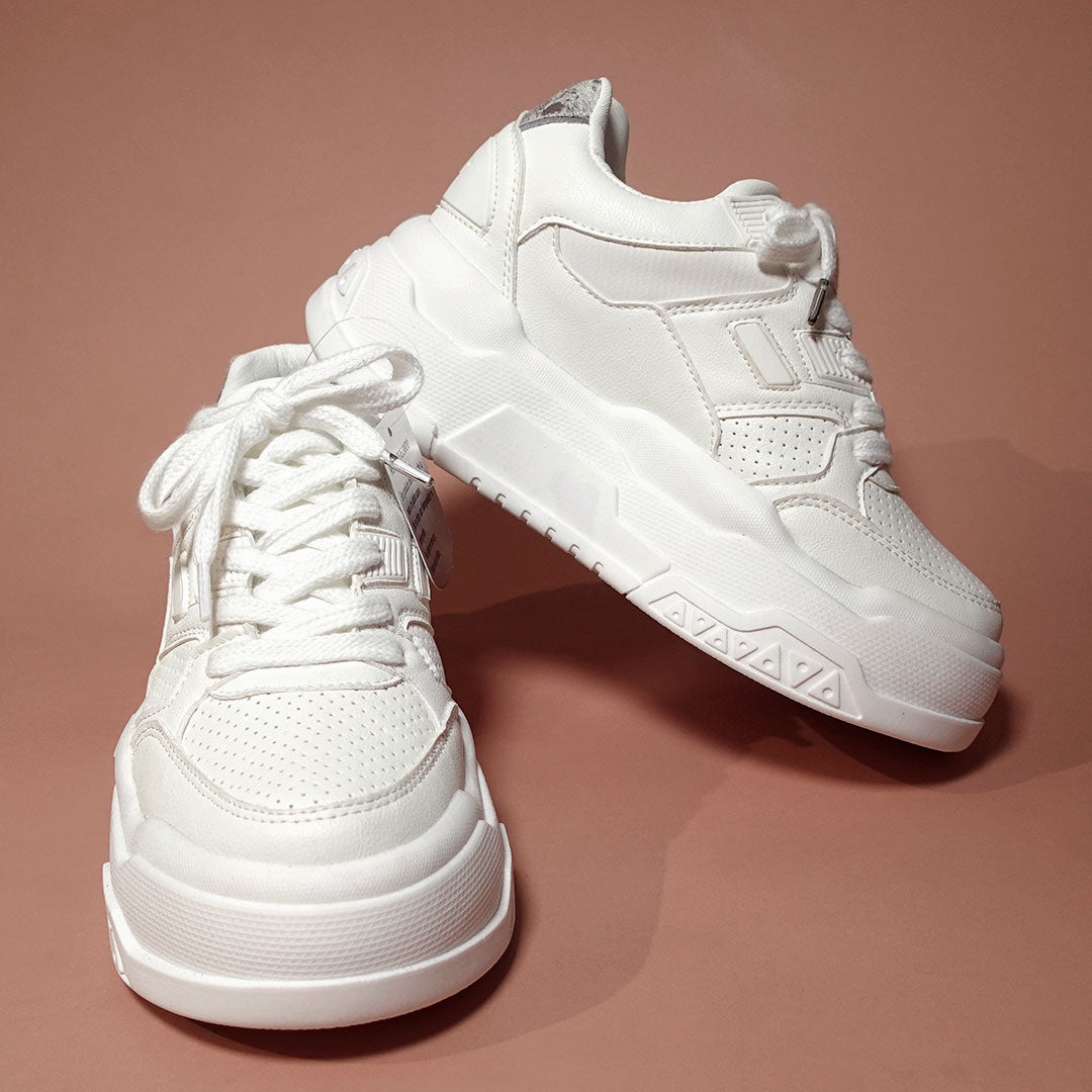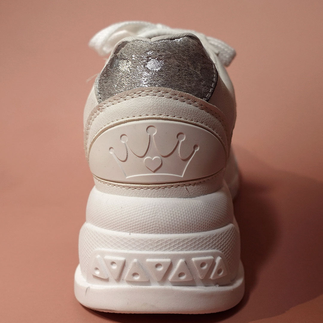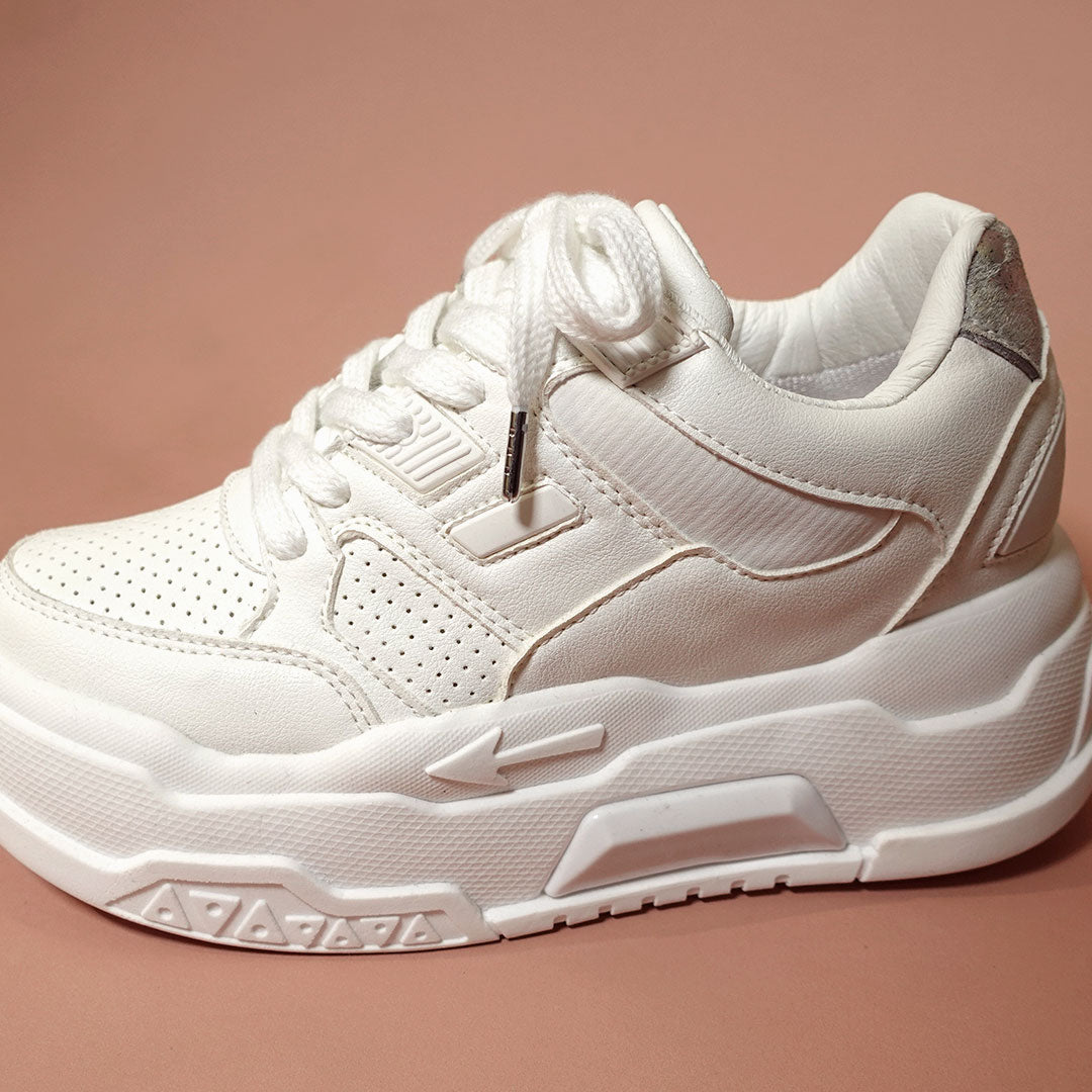 Los CalzAristy NILA en blanco son la mezcla perfecta entre actitud urbana y detalles sutiles que marcan la diferencia. Con una suela robusta y diseños geométricos en relieve, estos zapatos destacan por su estilo contemporáneo y un toque de glamour en el talón, con acabado metalizado y corona en bajo relieve.