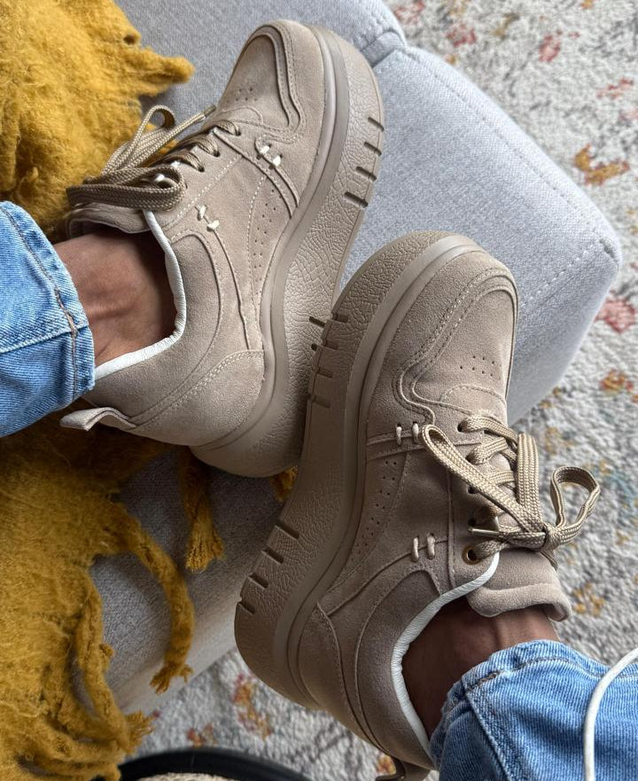 Tenis casuales con detalles manuales y contraste con la suela SABINA Camel