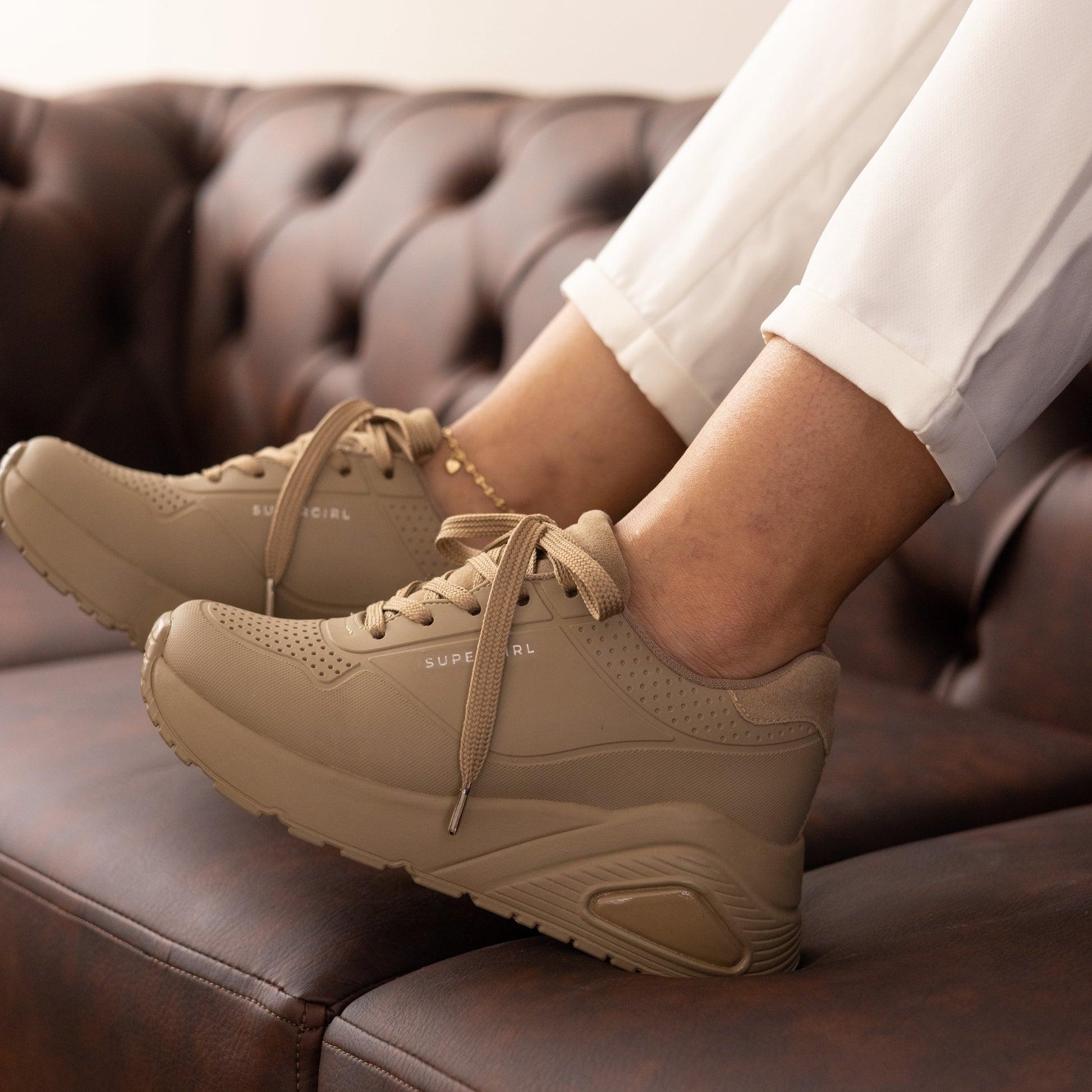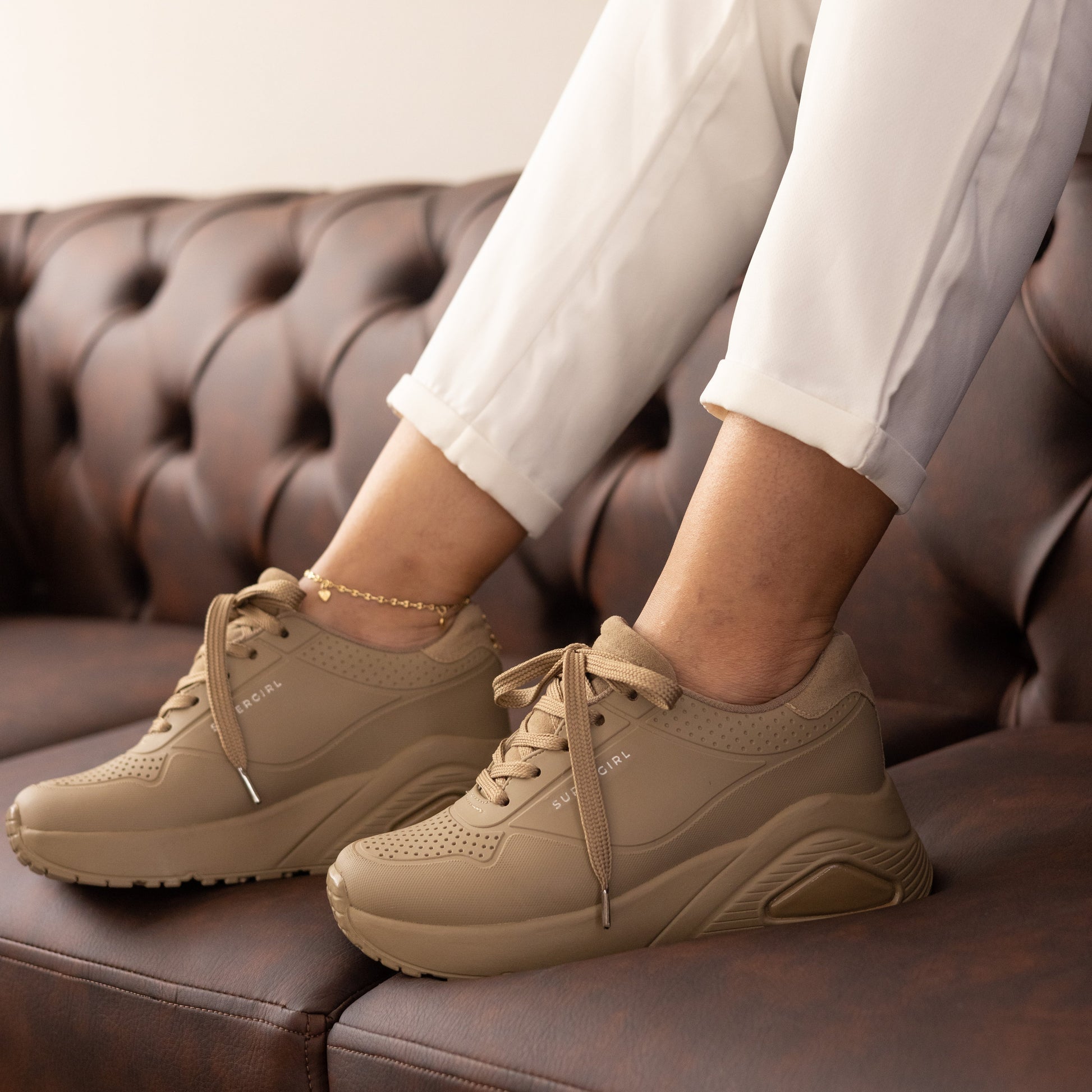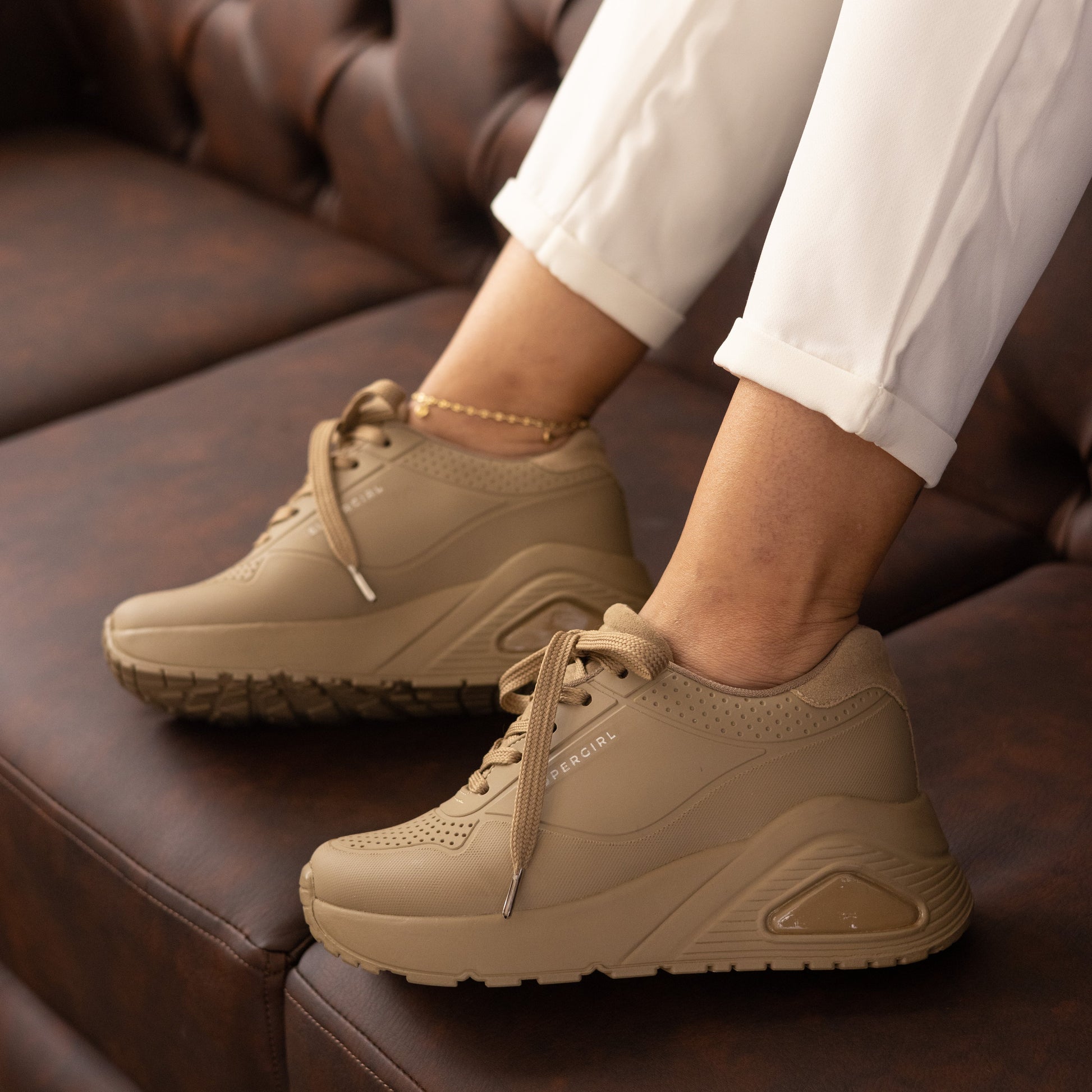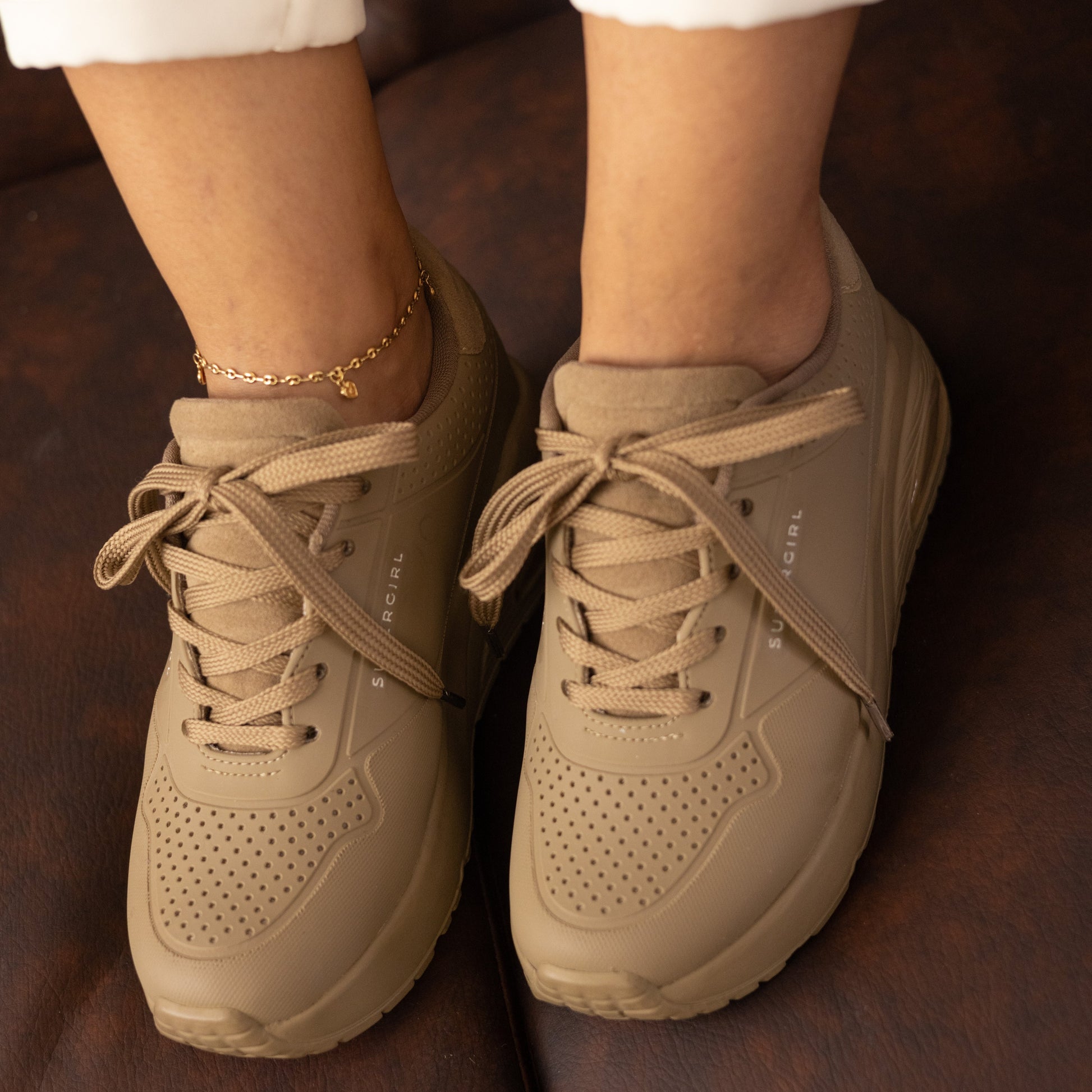 Tenis casuales capellada en caucho con texturas SuperGirl Camel
