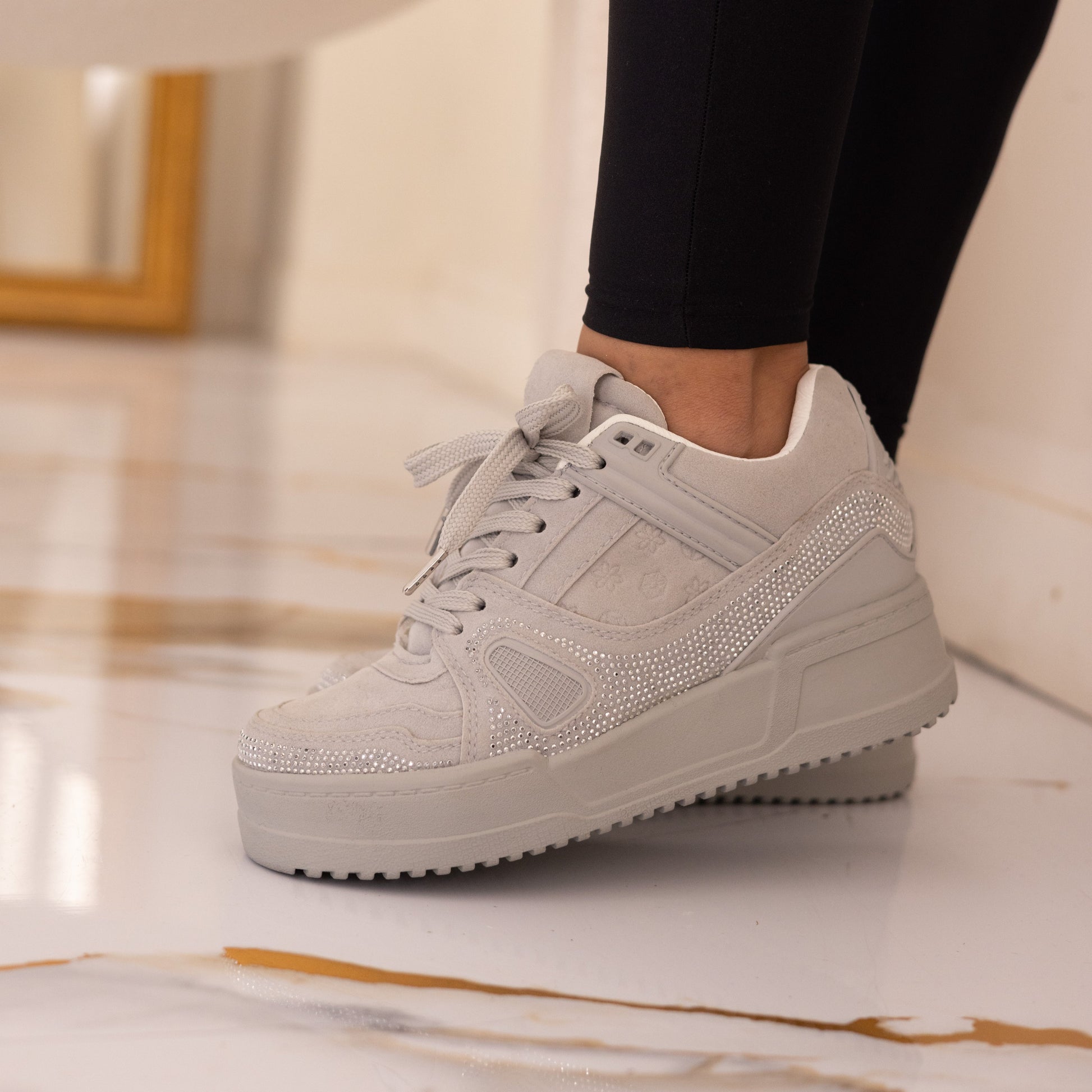 Tenis casuales con apliques en caucho y piedras brillantes MACARENA-2 Gris