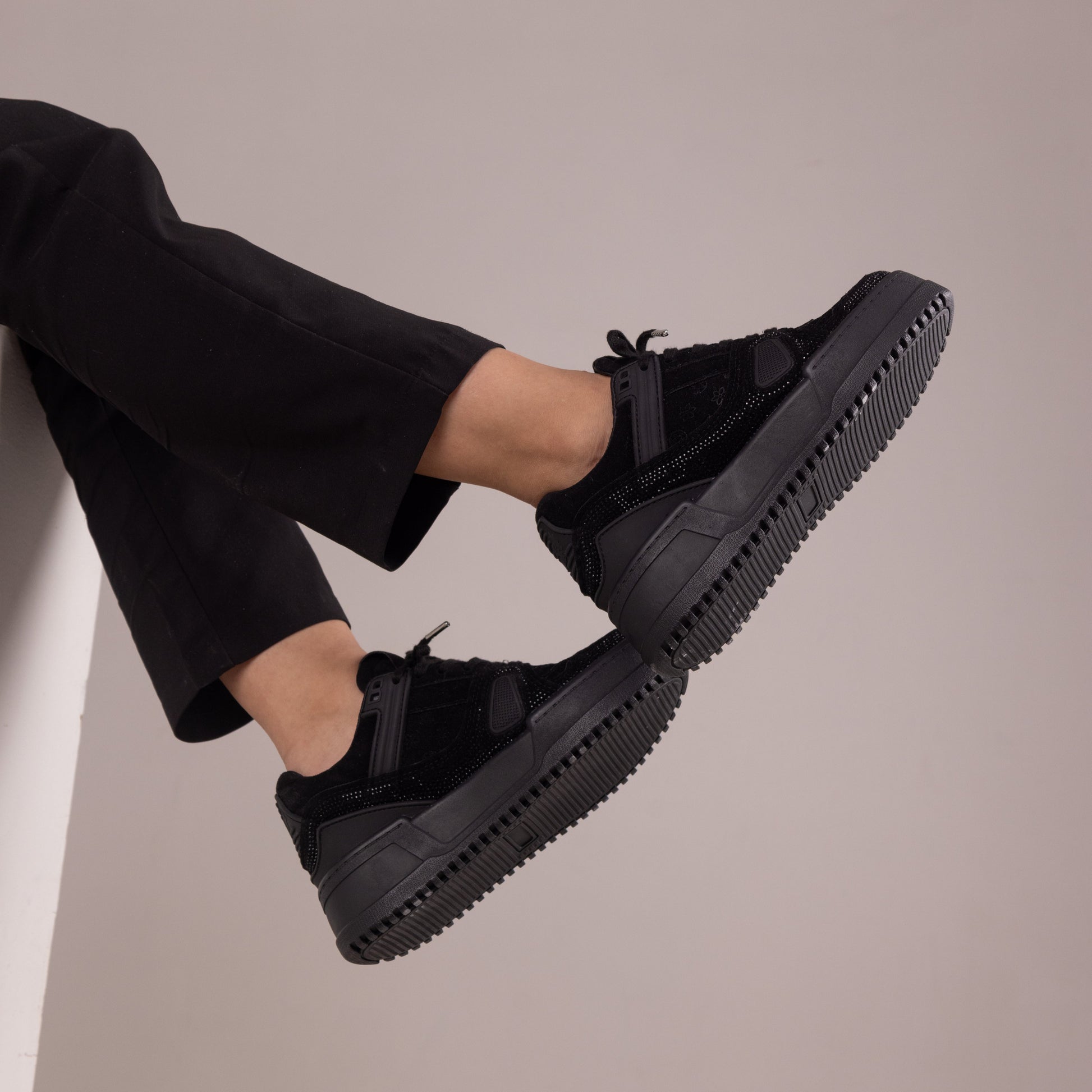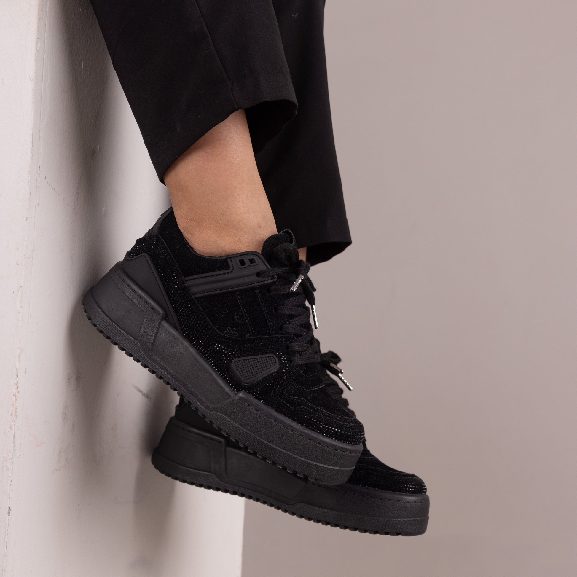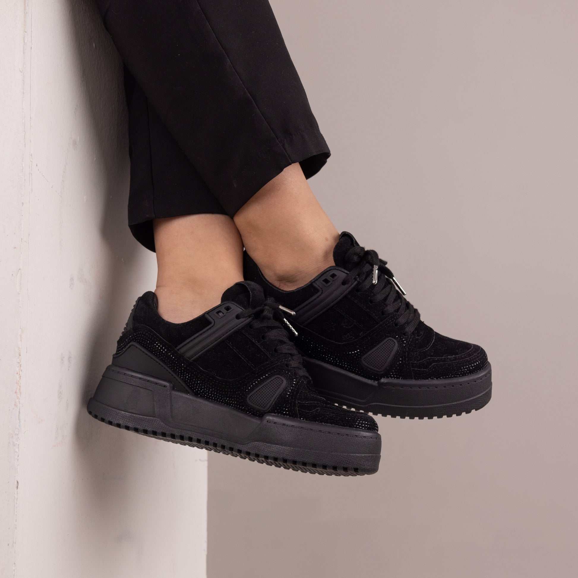 Tenis casuales con apliques en caucho y piedras brillantes MACARENA-2 Negro