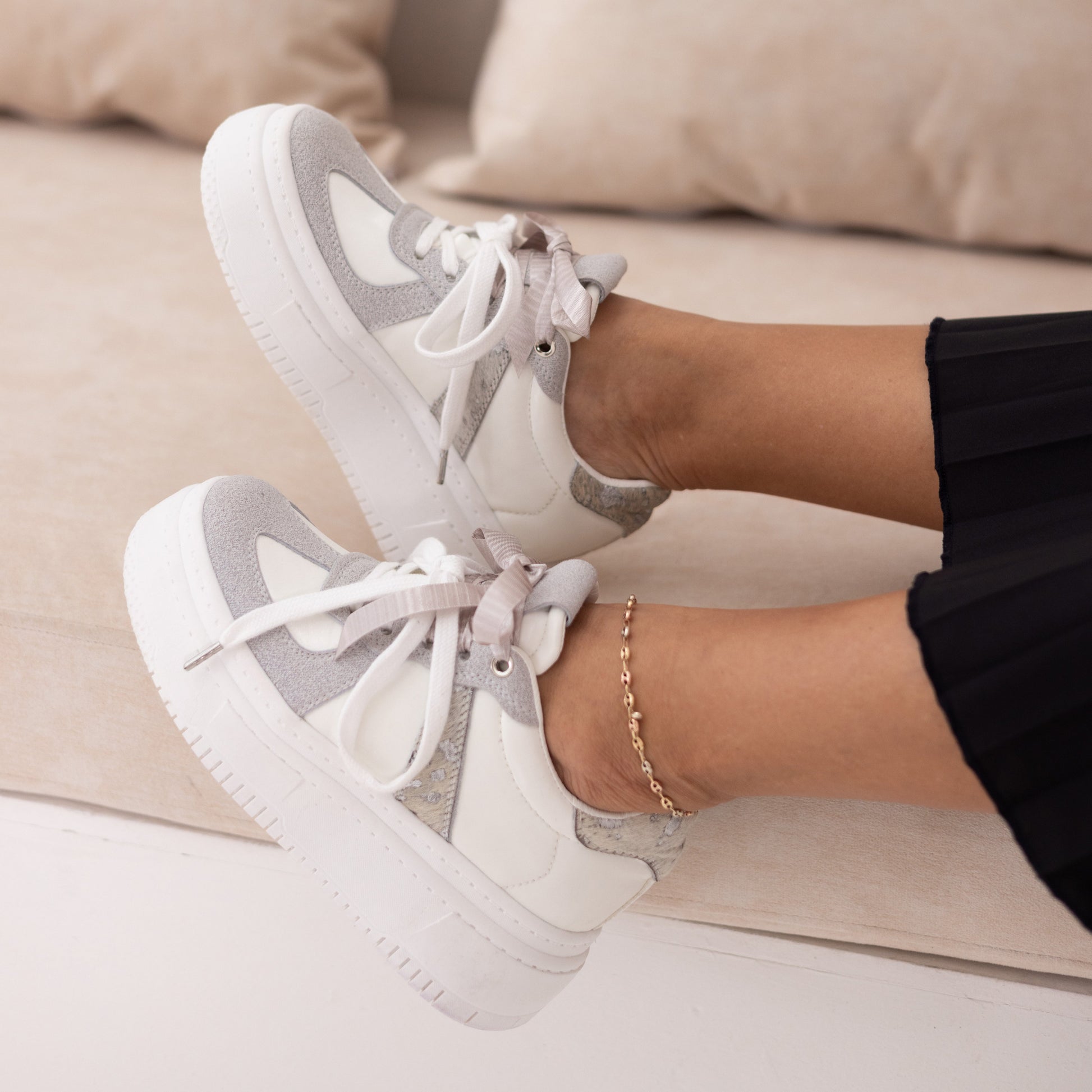 Estos tenis en color blanco combinan un diseño casual y moderno, inspirados en la tendencia de los animal print , con una plataforma interna que aporta comodidad y altura. Los elegantes apliques en print y la combinación de sus cordones con una cinta que contrasta con el estilo agregan un toque sofisticado, convirtiéndolos en la opción perfecta para un look estilizado y cómodo. Fabricados con materiales de alta calidad, estos tenis aseguran durabilidad y confort durante todo el día. Ideales para combinar con cualquier outfit, desde lo casual hasta lo elegante.