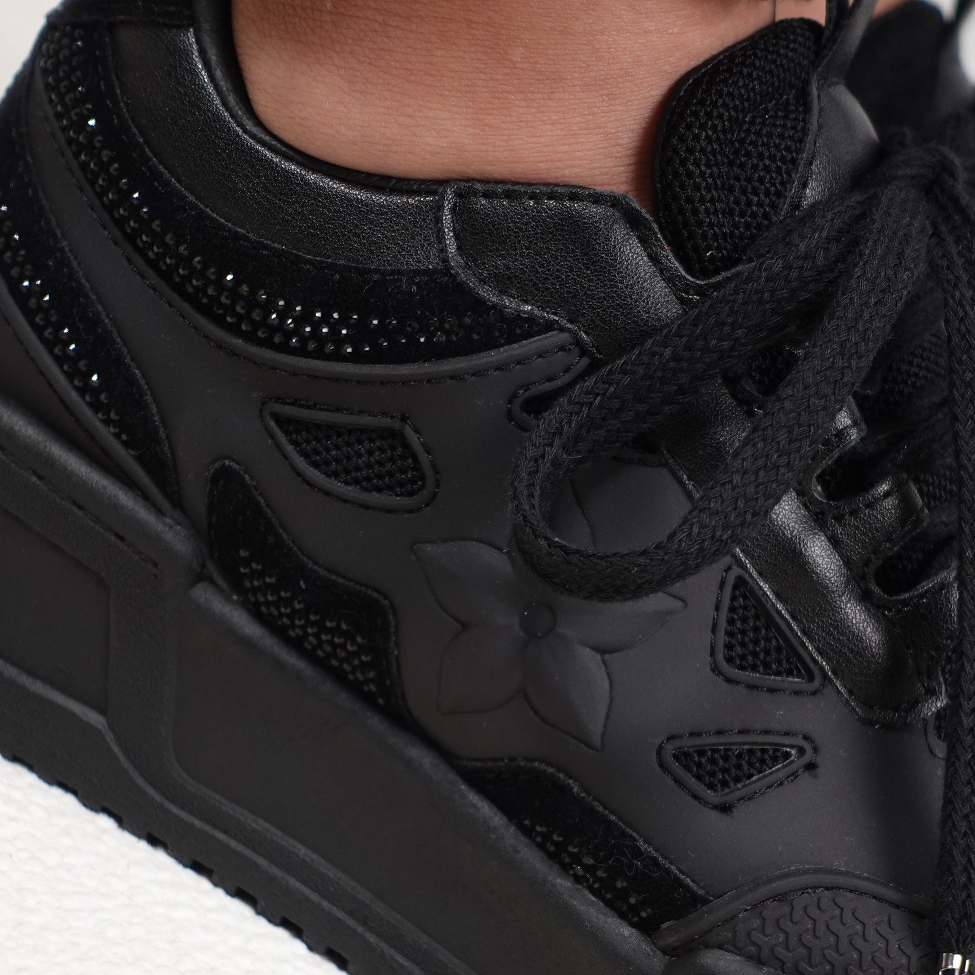 Tenis casuales con flor lateral y piedras brillantes AMAIA-2 Negro