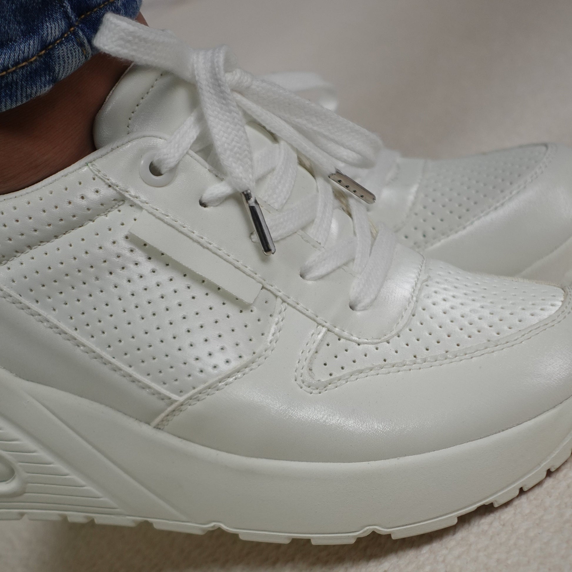 Estos tenis en color blanco combinan un diseño casual y moderno, inspirados en la tendencia de los metalizados, con una plataforma interna que aporta comodidad y altura. Los elegantes materiales metalizados agregan un toque sofisticado, convirtiéndolos en la opción perfecta para un look estilizado y cómodo. Fabricados con materiales de alta calidad, estos tenis aseguran durabilidad y confort durante todo el día. Ideales para combinar con cualquier outfit, desde lo casual hasta lo elegante.