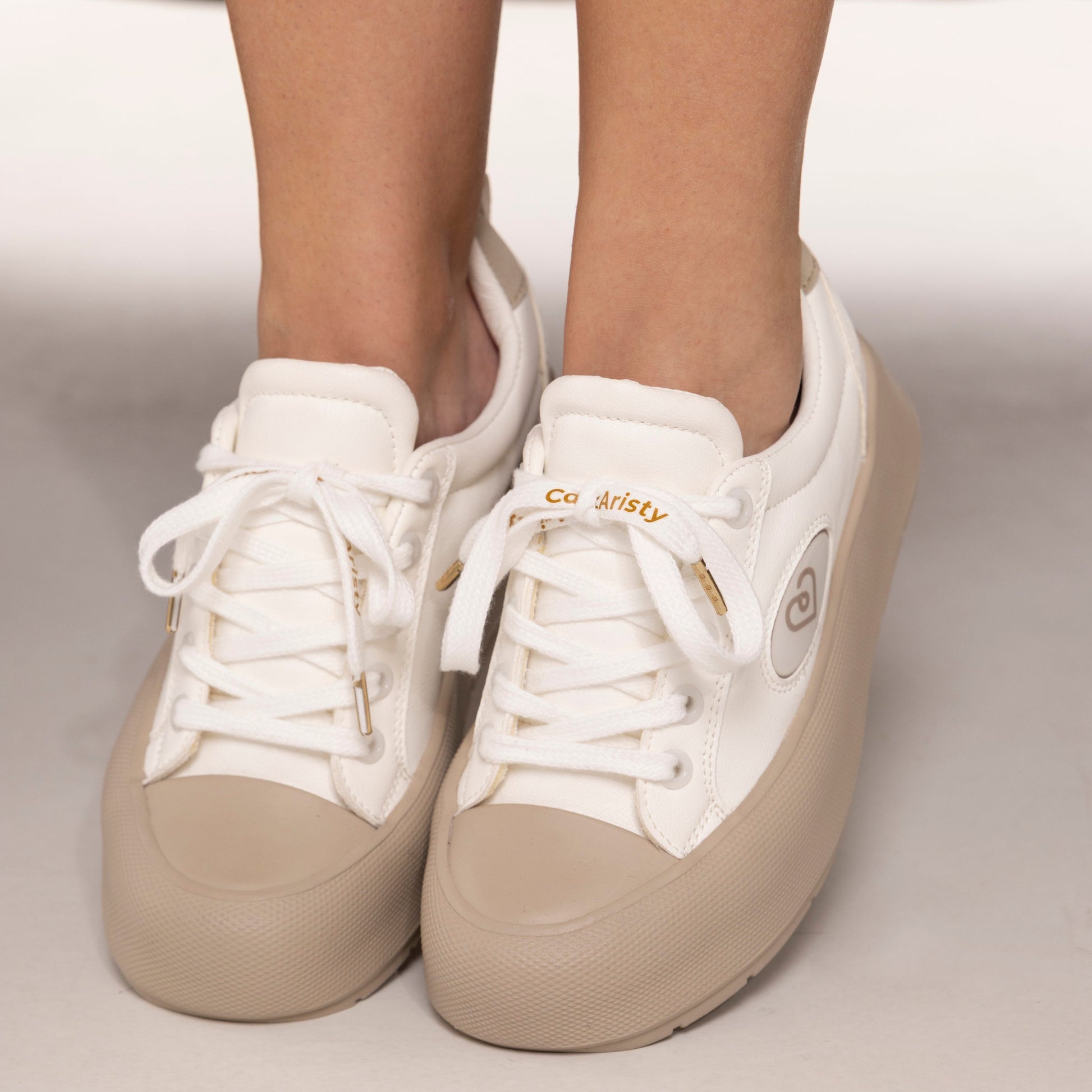 Tenis plataforma SOLEI en color blanco con taupe para mujer – CalzAristy