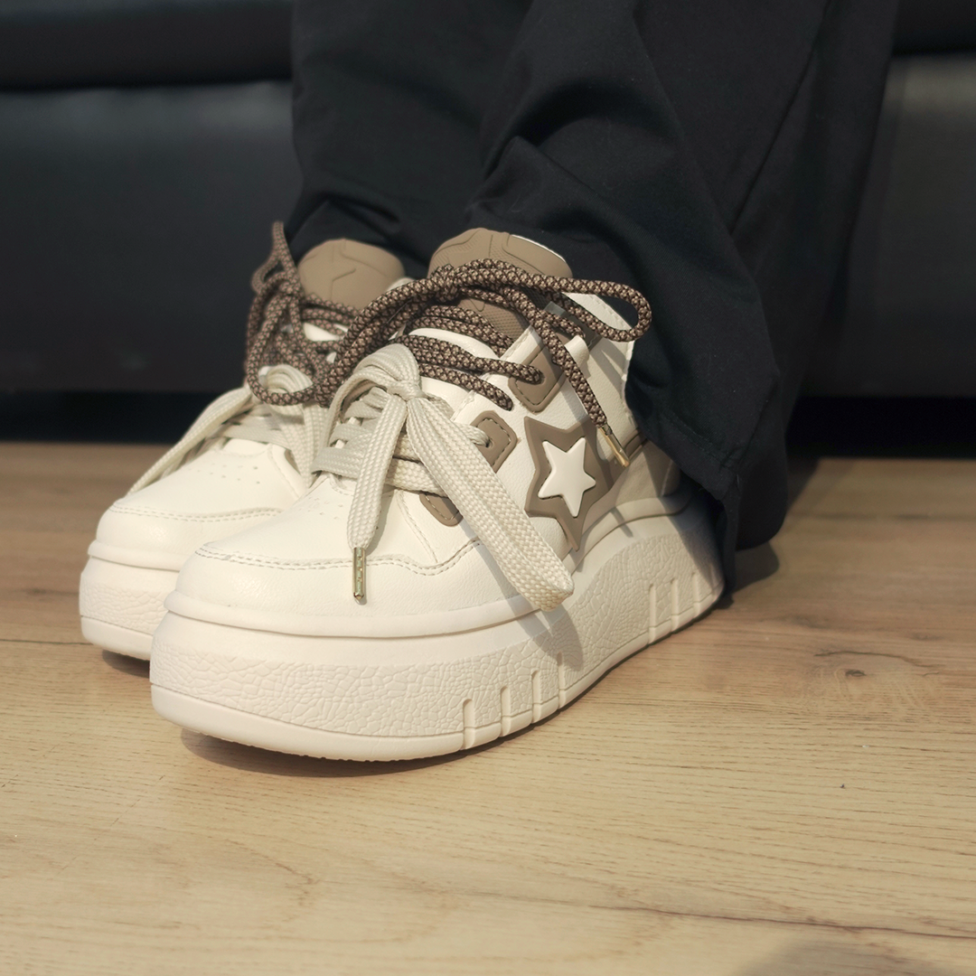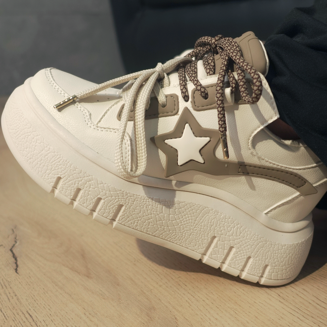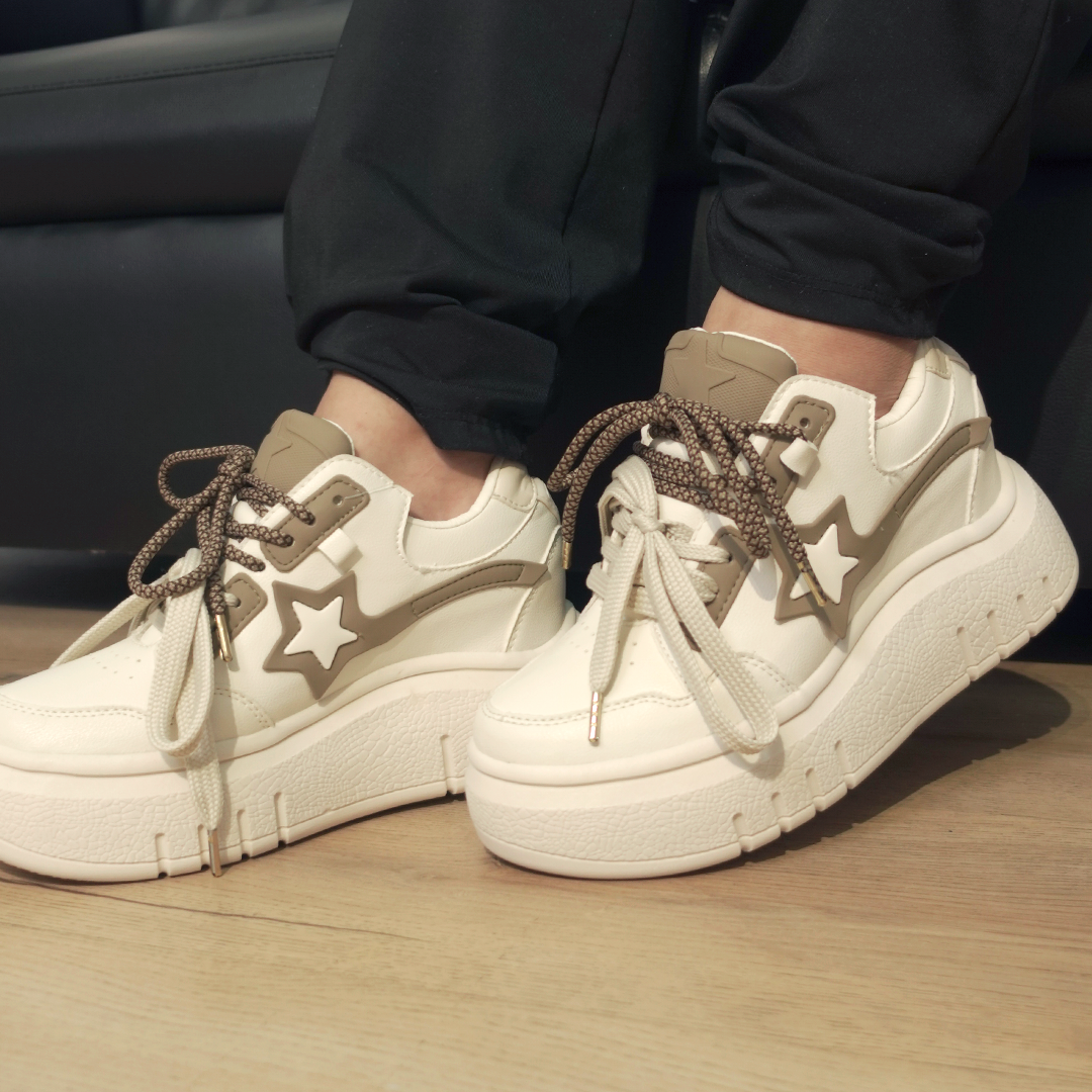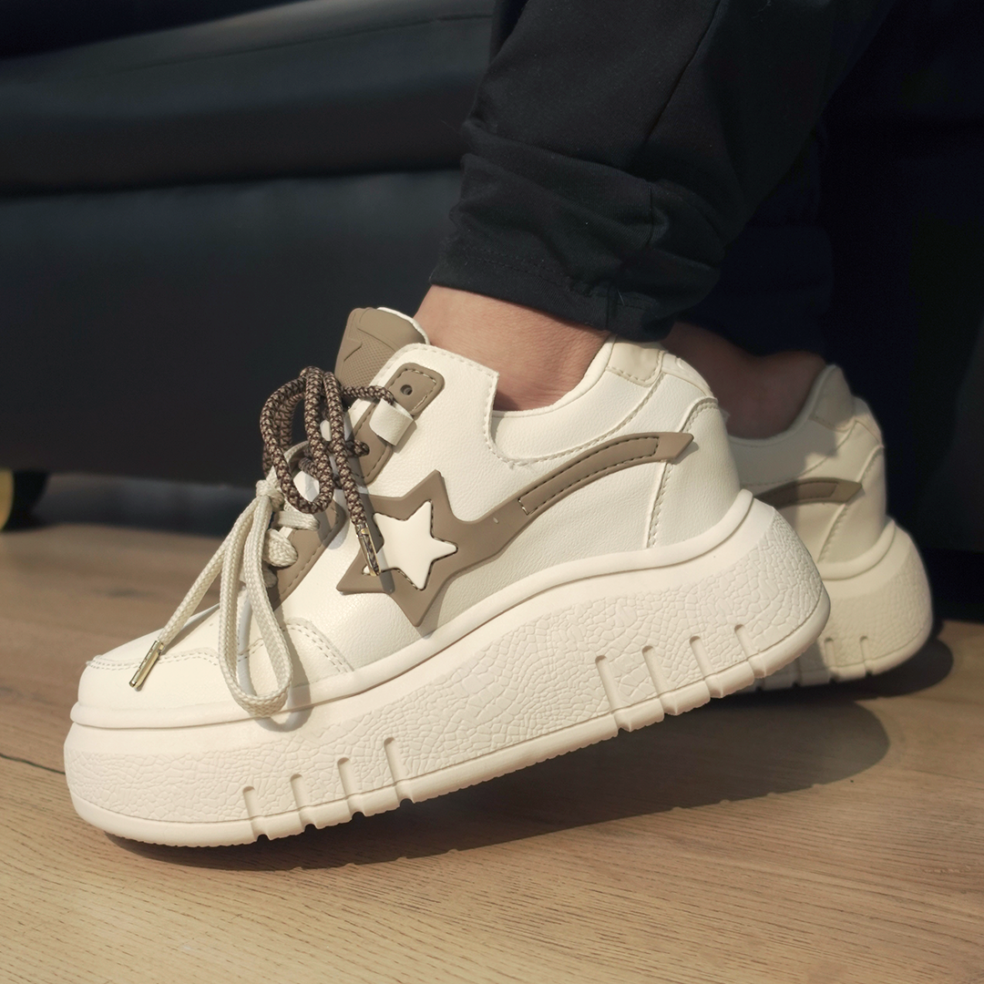 Los Zapatos de Mujer CalzAristy VIVIAN Beige reinterpretan la sobriedad con un diseño chunky que impone estilo. Su suela blanca en contraste, la icónica estrella lateral y los detalles minimalistas hacen de este modelo una pieza clave para looks versátiles y modernos.