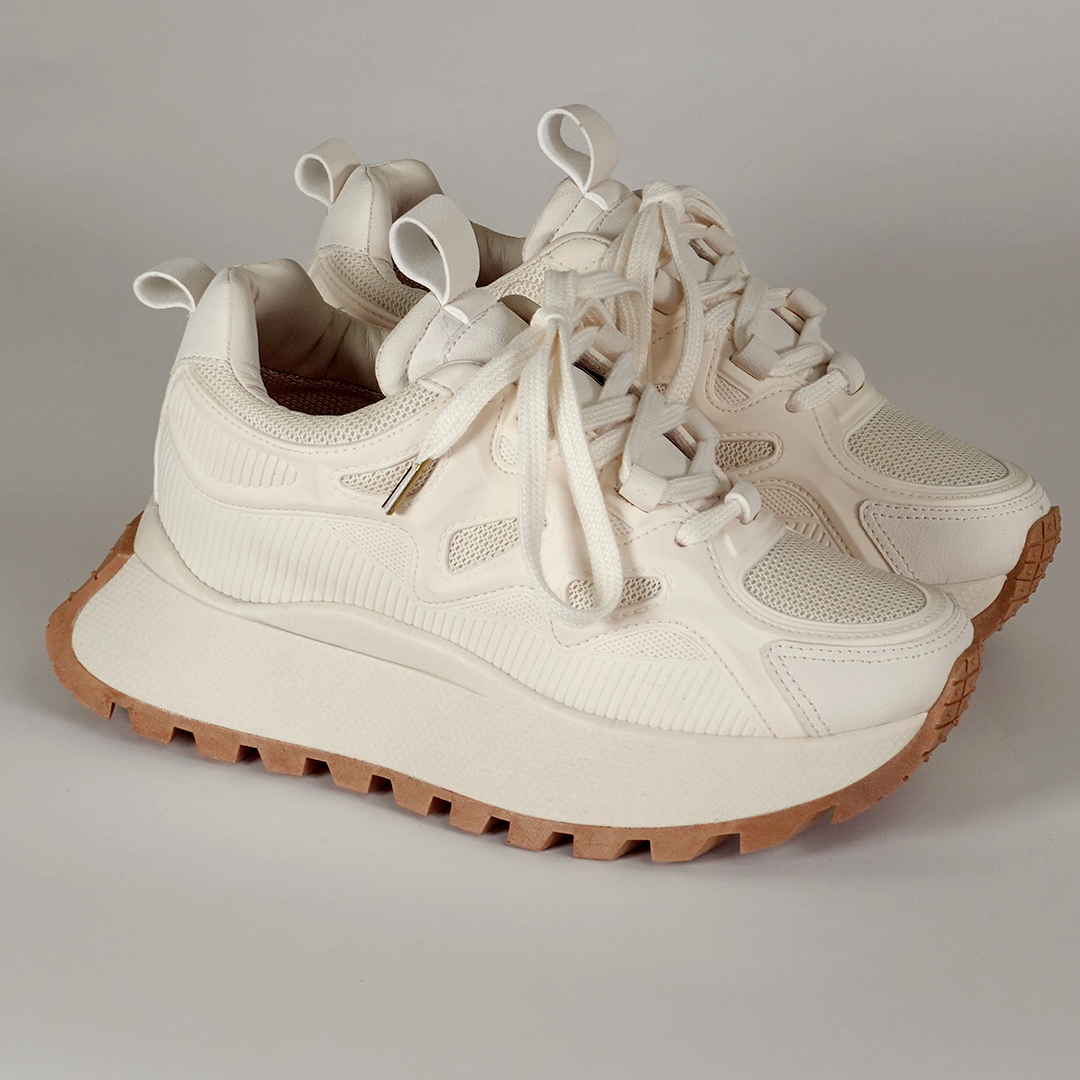 Su diseño moderno con suela gruesa y materiales sintéticos de excelente calidad los hace perfectos para cualquier ocasión. Disponibles en tallas del 34 al 40, su tono beige aporta versatilidad y estilo a tu colección.