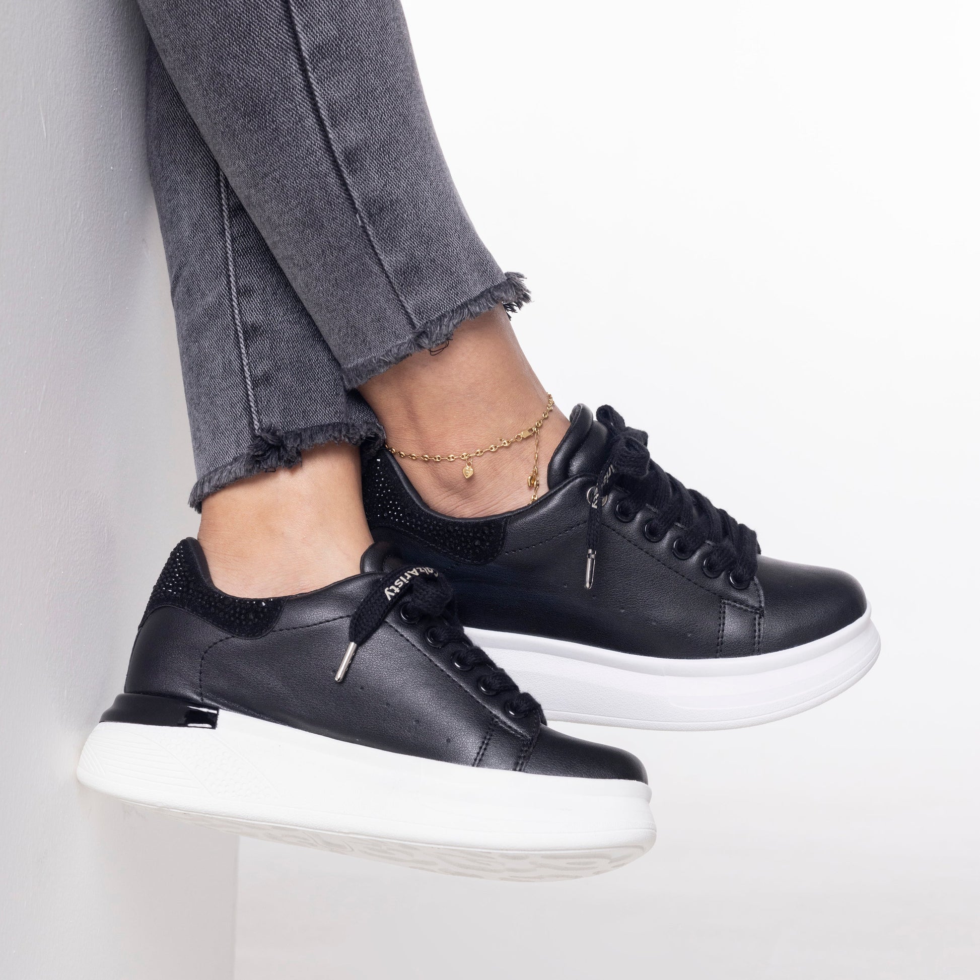 Las zapatillas AITANA de Calzaristy han sido diseñadas para ofrecer el equilibrio perfecto entre estilo, comodidad y funcionalidad. Su acabado en color negro aporta una estética sobria y atemporal que se adapta fácilmente a todo tipo de looks, convirtiéndolas en un básico imprescindible para el uso diario. Gracias a su diseño minimalista y urbano, son ideales tanto para conjuntos casuales como para estilismos más actuales.