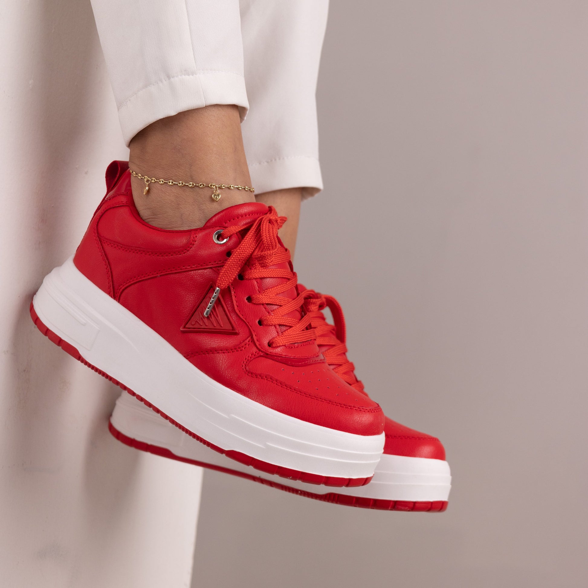 Su suela roja extra light crea un contraste vibrante con el rojo intenso, aportando un aire moderno y urbano. Además, gracias a su ligereza y diseño ergonómico, cada paso se siente cómodo y natural, incluso en días de mucho movimiento.